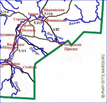 На Запад Карта Вилегодского района